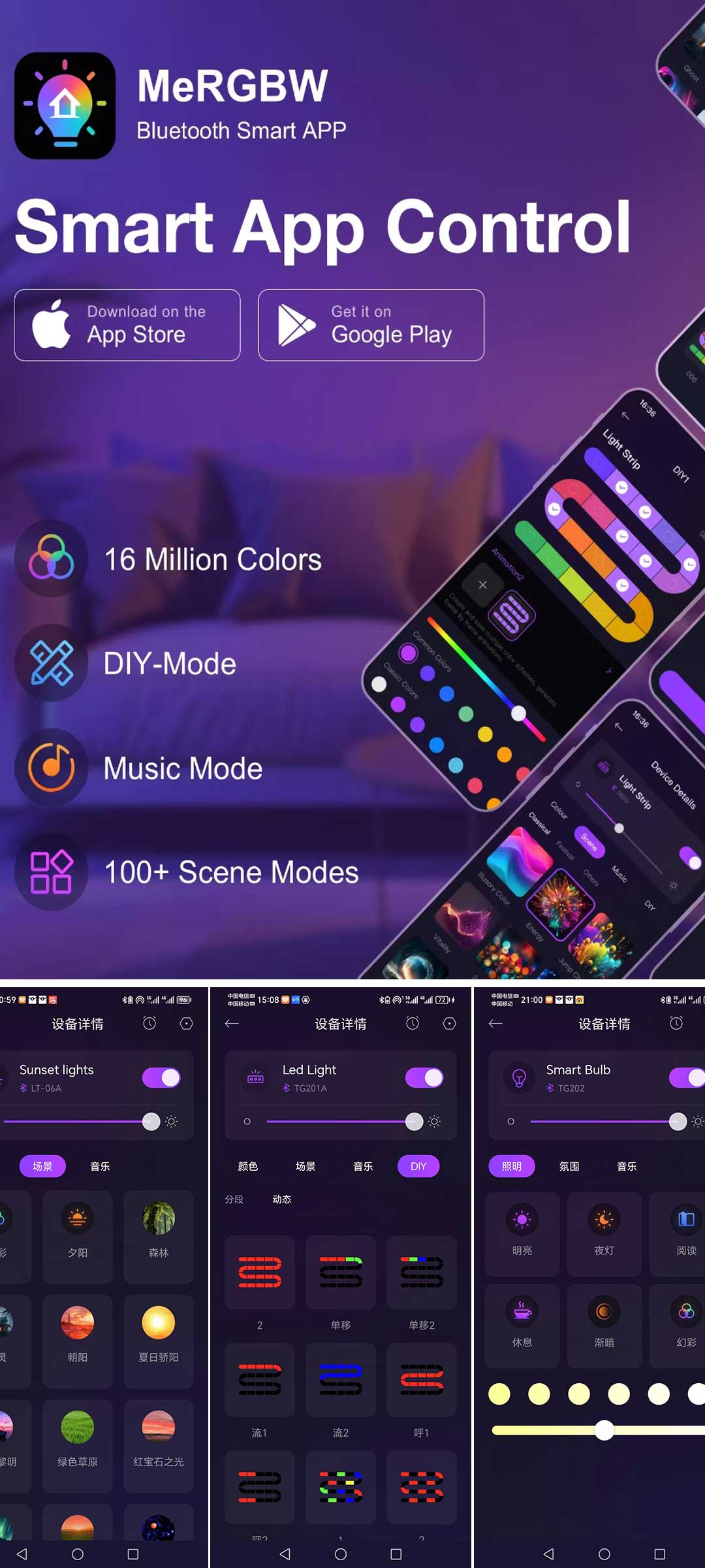 The MeRGBW is a mobile app that controls the LED lamp belt through apple or Android mobile phone